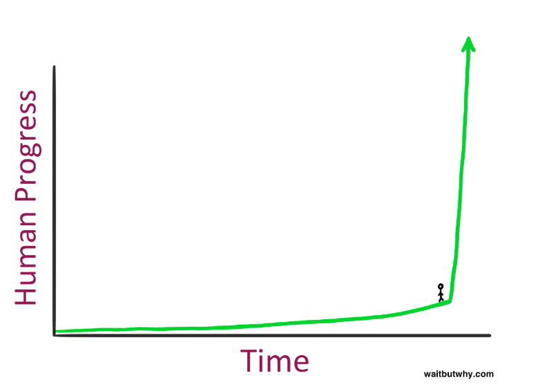 One of my favorite bloggers, Tim Urban, wrote a prophetic blog post back in 2015 about the coming AI revolution. In it, he talked about how we’re standing at the “knee of the curve,” or in other words, the moment when human progress stops moving linearly and starts compounding.